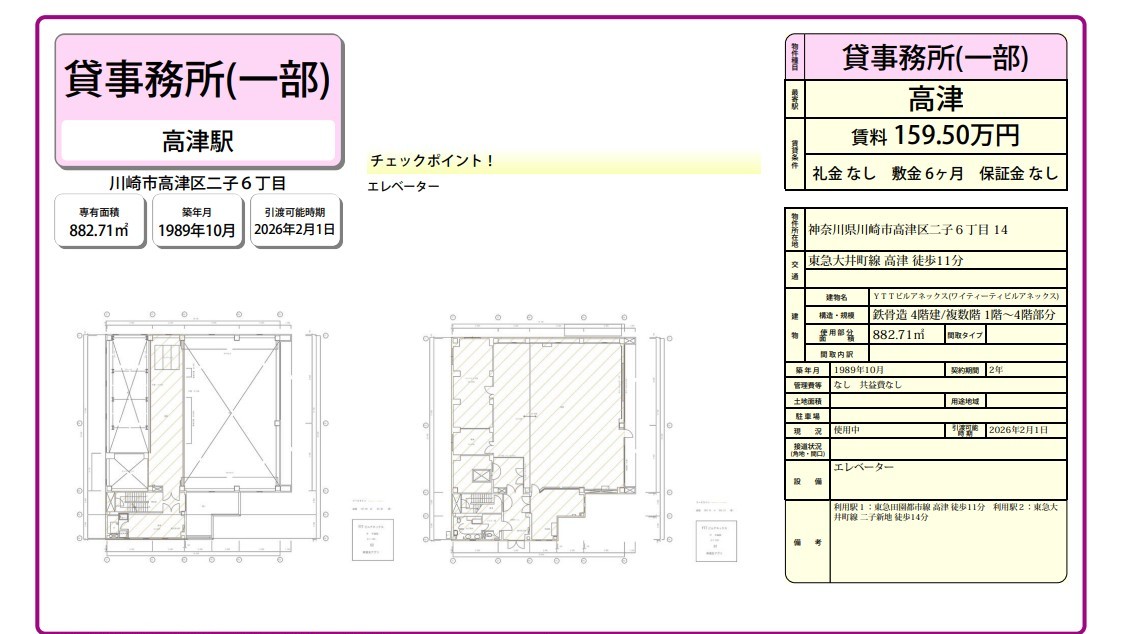 神奈川県川崎市高津区二子6-14 (高津) YTTビルアネックス 詳細データ