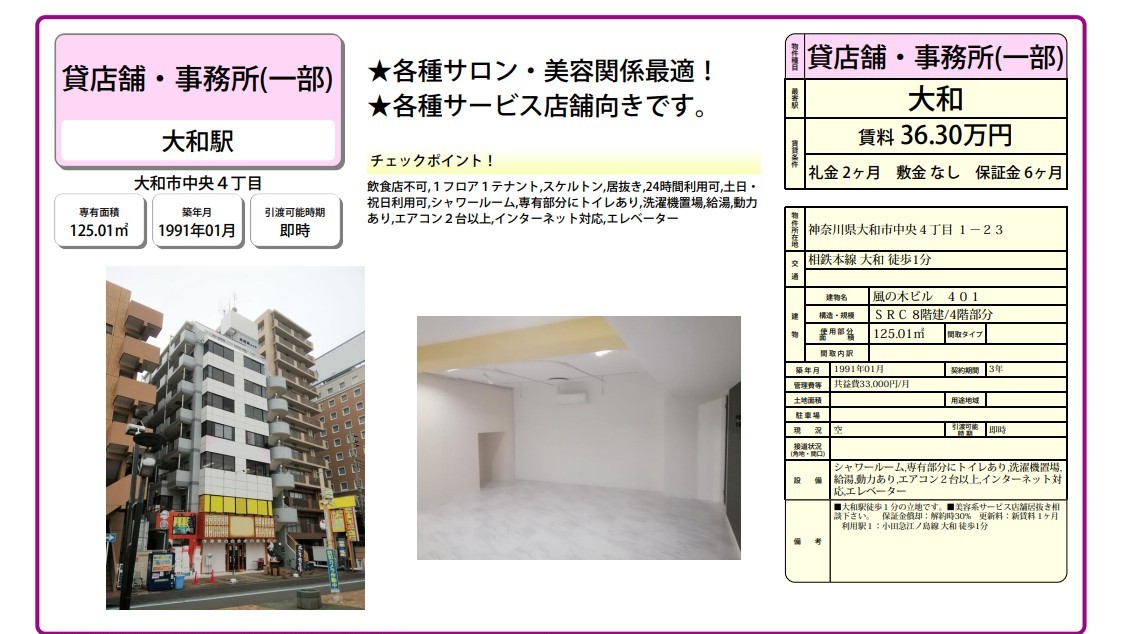 神奈川県大和市中央4-1-23 (大和) 風の木ビル 詳細データ