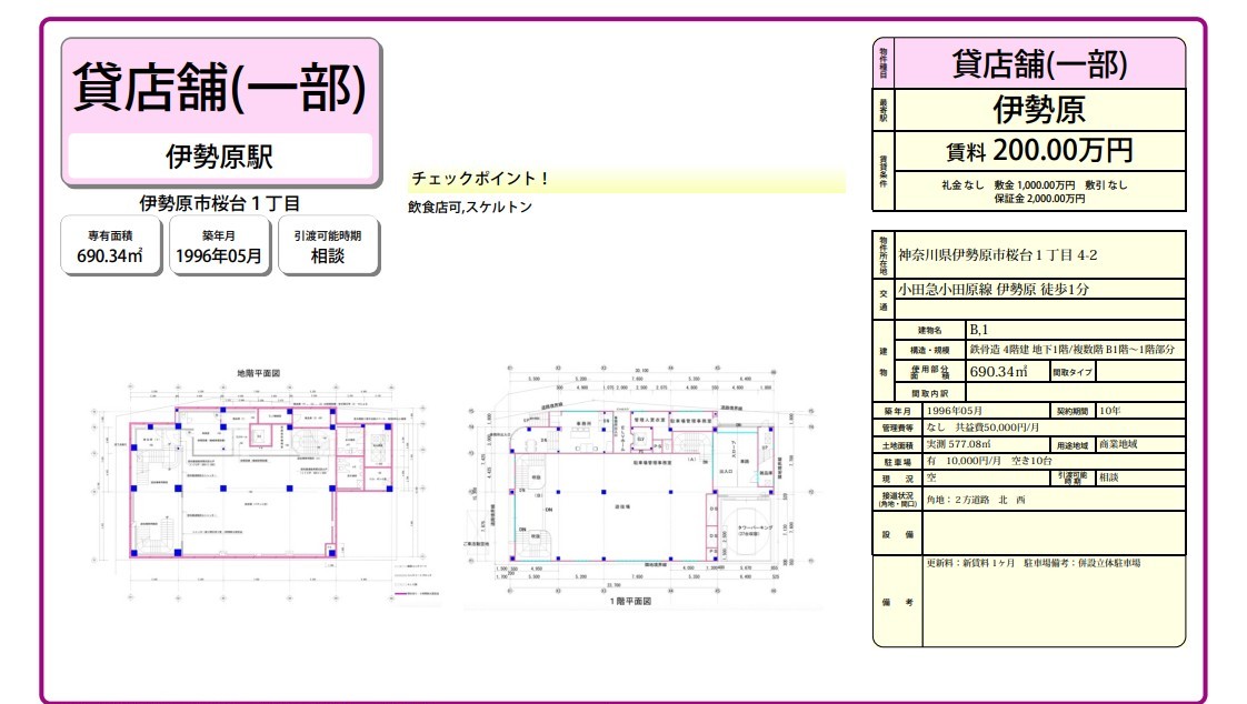備考 | 飲食店可スケルトン 条件交渉ご相談ください。 |