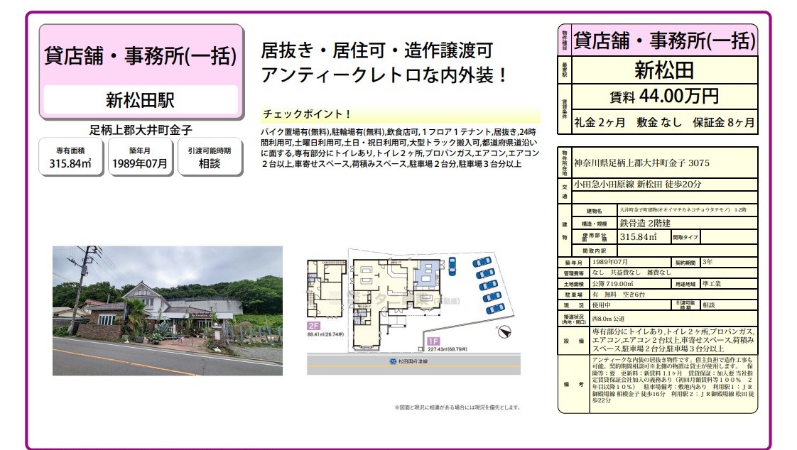 神奈川県足柄上郡大井町金子3075 (新松田) 大井町金子町建物(オオイマチカネコチョウタテモノ) 詳細データ