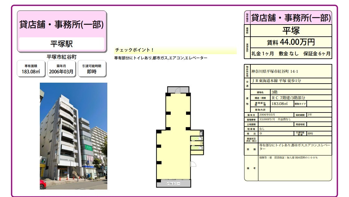 | 物件名 | 平塚 事務所 |