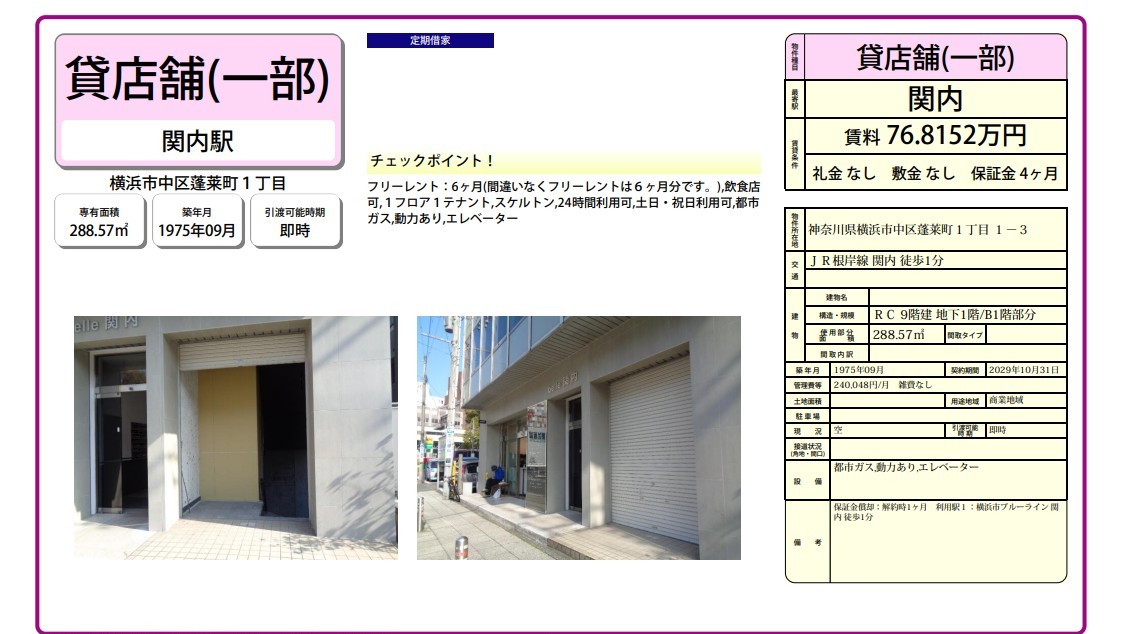 神奈川県横浜市中区蓬莱町1-1-3 (関内) 関内 事務所 詳細データ